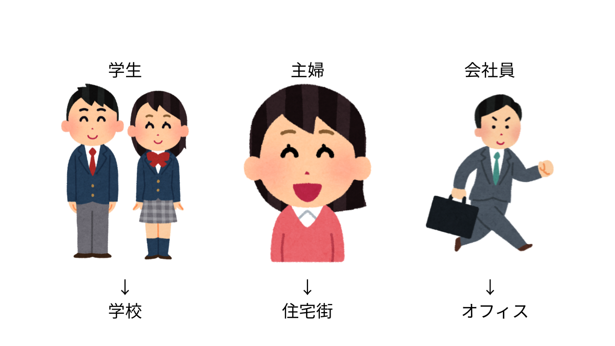 - ビジネス向けカフェ → オフィス街